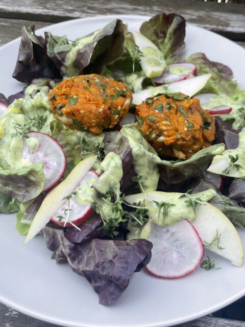 450g Süßkartoffeln 50g Lauchzwiebeln 1 kleine rote Chilischote 1/2 Bund glatte Petersilie…