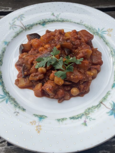 1 Aubergine (groß) 2-3 Kartoffeln ca. 100g Kichererbsen (gegart) 1 Zwiebel 1-2…