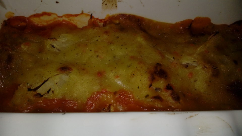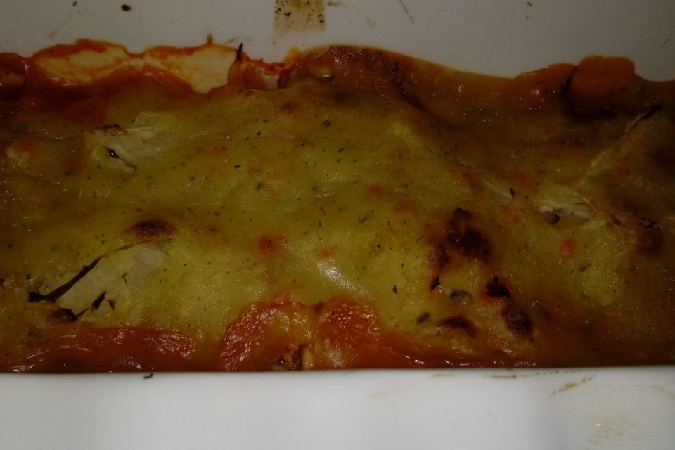 In eine Auflaufform etwas von der Sauerkrautmasse geben, mit Lasagneplatten bedecken, darauf wieder Sauerkrautmasse usw. Mit einer Schicht der hergestellten hellen Soße abschließen. Bei 180 Grad umluft ca. 30 Minuten backen.