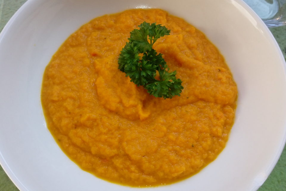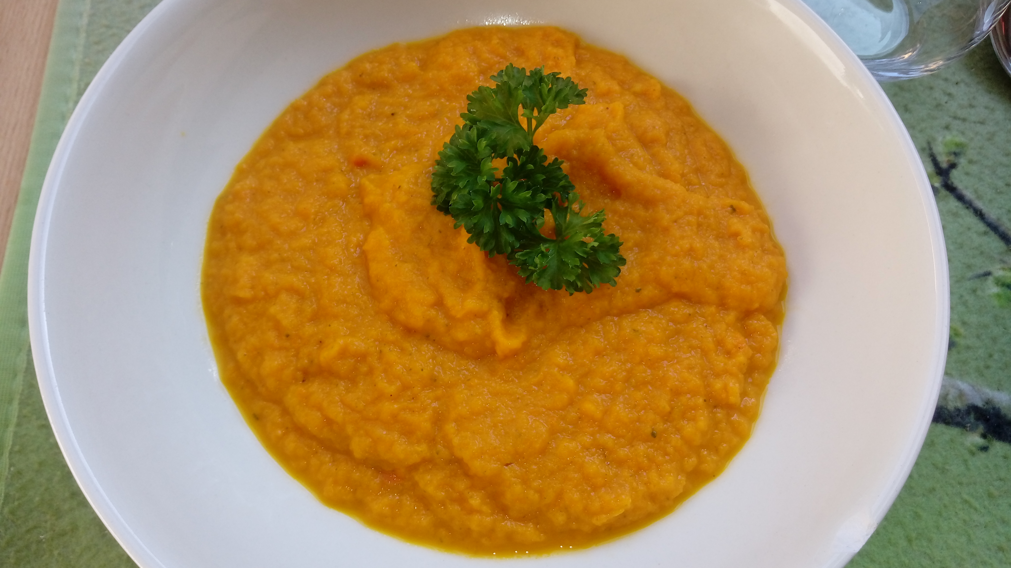 Zwiebel schälen, kleinschneiden und in Öl andünsten. Karotten schälen, in grobe Scheiben schneiden. Knoblauchzehe schälen und fein hacken. Ingwer schälen und fein reiben. Knoblauch Karotten und Ingwer zu den Zwiebeln geben und kurz mitbraten. Dann mit Gemüsebrühe aufgießen. Das ist nun Geschmacksache: ich gieße nur ganz wenig an- wir lieben es wenn die Suppe sehr dickflüssig ist. Für eine “richtige” Suppe kann man bestimmt 800-1000 ml angießen.Bei geschlossenem Deckel köcheln lassen bis die Karotten weich sind. Den Orangensaft zugeben und mit Chili, Pfeffer und Salz würzen. Alles pürieren und genießen!