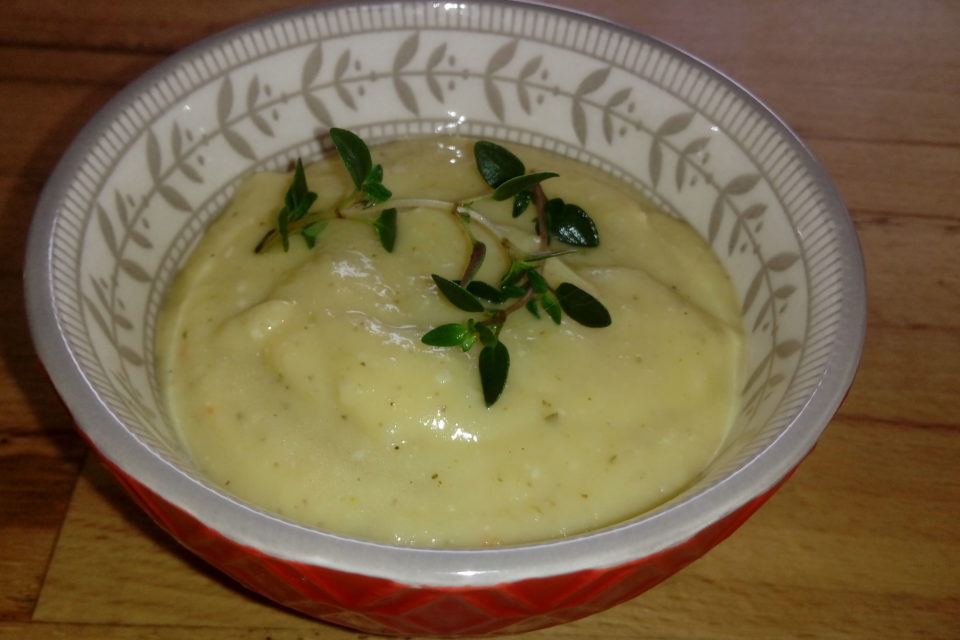 Zwebel kleinschneiden und andünsten. Knoblauch und abgetropfte Bohnen sowie die Gemüsebrühe zugeben und ca. 8 Minuten köcheln lassen. ÖL, abgezupfte Thymianblättchen und Zitronensaft unterrühren. Mit Salz und Pfeffer würzen und pürieren!