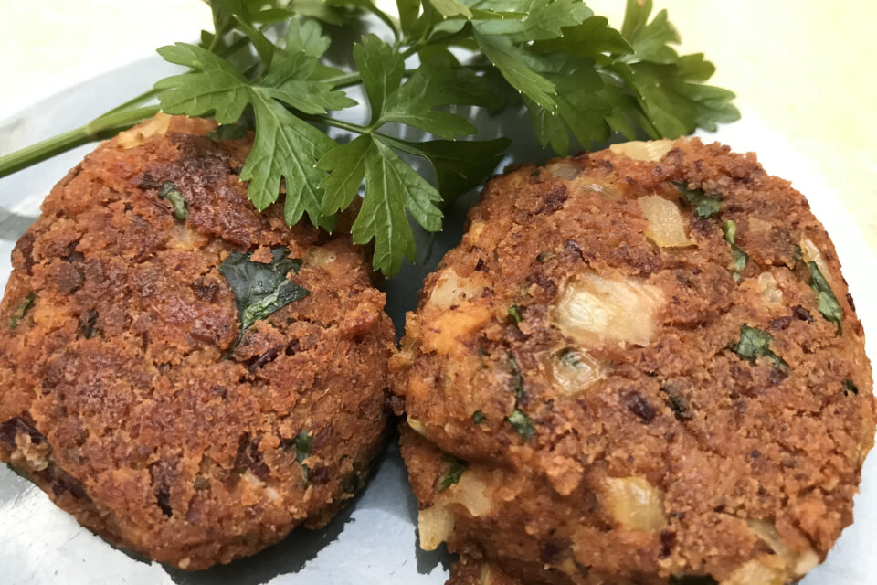 Bohnen, ausgedrücktes Brötchen und Tofu pürieren, die Zwiebel und den Knoblauch fein hacken und alle restlichen Zutaten miteinander mischen. Soviel Paniermehl zugeben, dass eine feste, gut formbare Masse entsteht. In reichlich Öl knusprig braten.