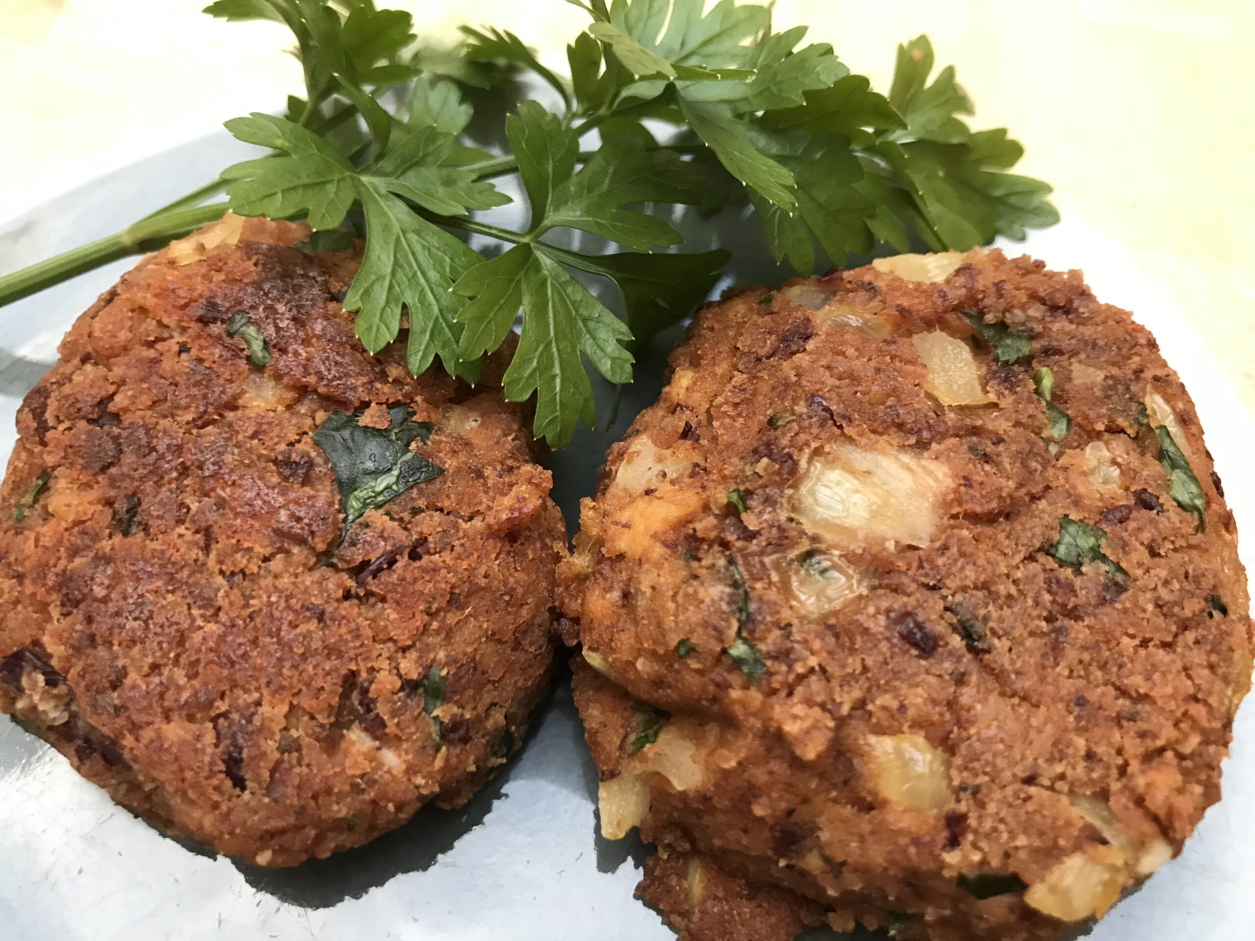 Nachdem ich Siggi letztens total niedergeschlagen von meinem missglückten Seitanschnitzel- Experiment berichtete (ich probiere ständig irgendwas Neues aus, aber oft bin ich nicht überzeugt und die Sachen erscheinen dann natürlich nicht auf dieser Seite), schlug sie mir ein gelingsicheres und einfaches Rezept für Bratlinge vor. Und – was soll ich sagen- sie sind superlecker und mit Räuchertofu richtig deftig! Super zu Kartoffeln und Salat oder als Burger.