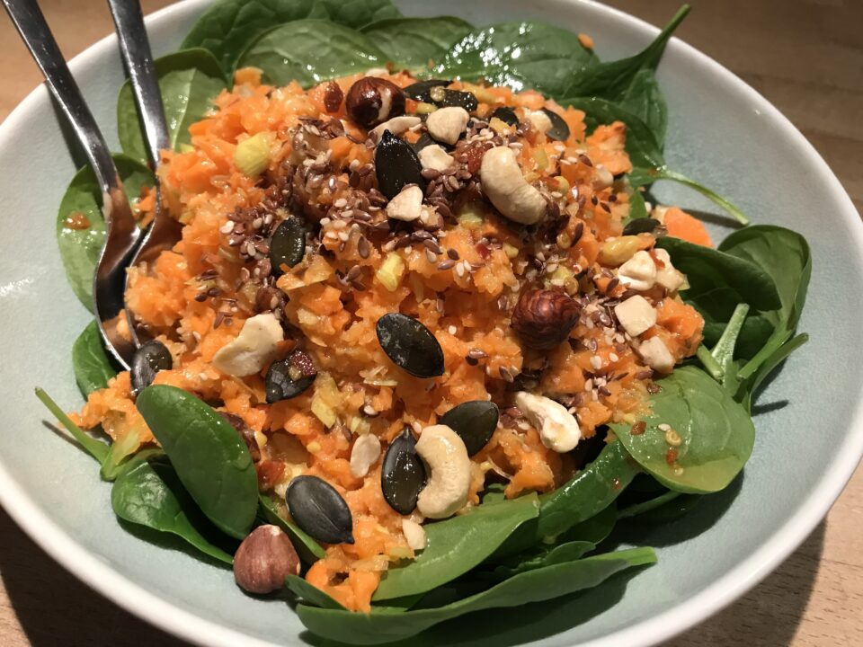 Alles aufs Blech werfen und den Ofen die Arbeit erledigen lassen- herrlich! Ich hatte noch Kichererbsen und Pilze mitgebacken- würde ich aber nicht mehr machen.