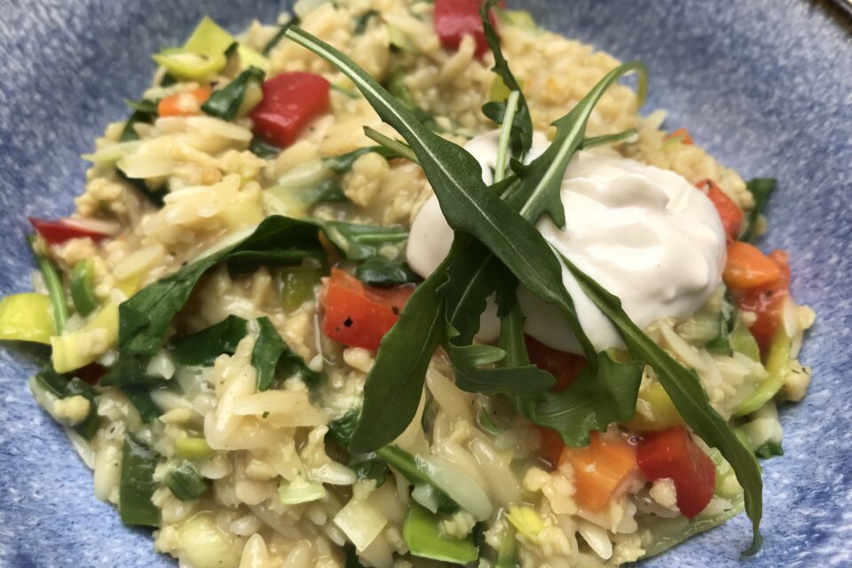 Mit Rucola und einem Klecks Frischecreme servieren.