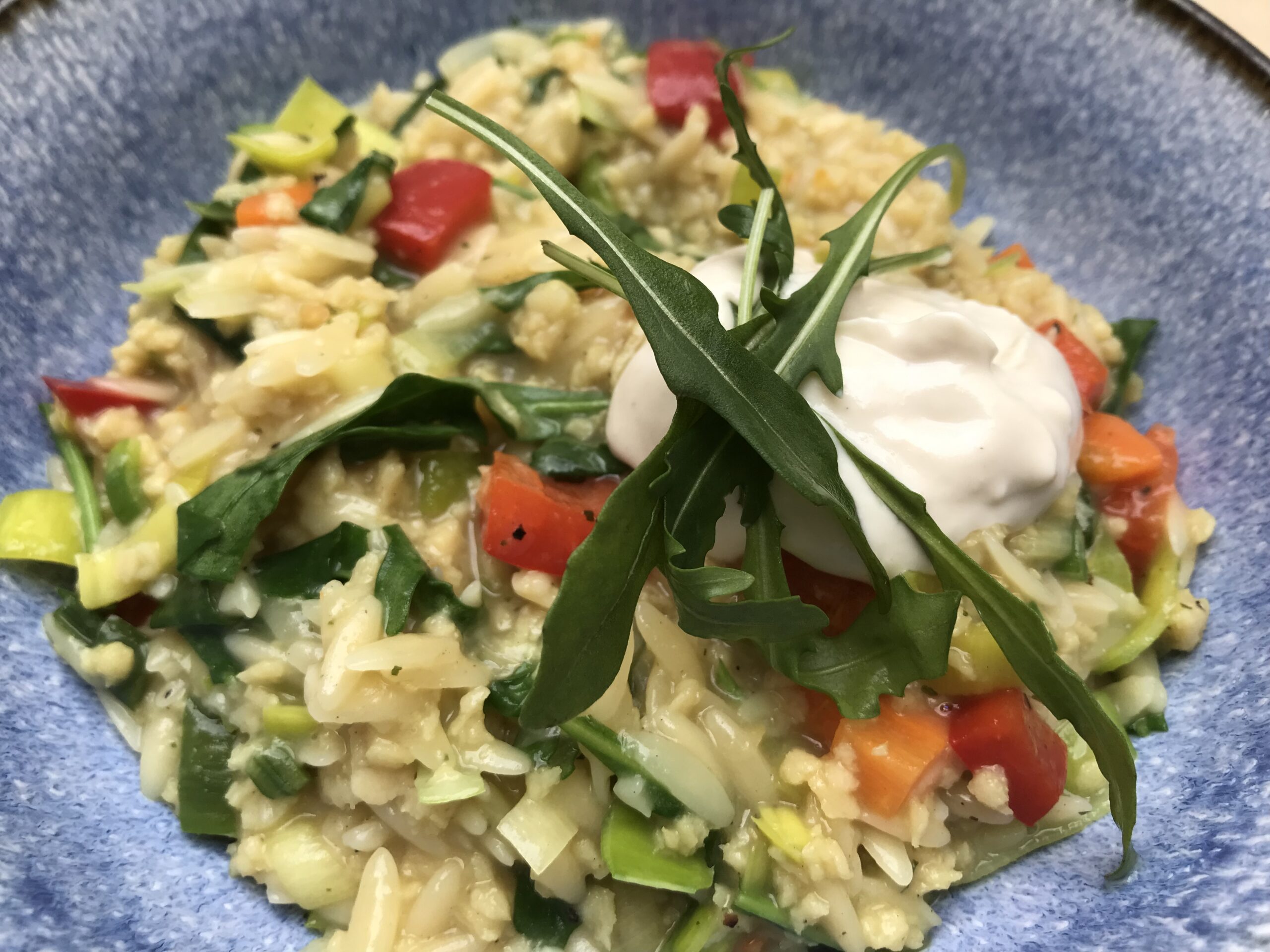 zum Servieren: mehr Rucola und Frischecreme (ist aber eigentlich unnötig)