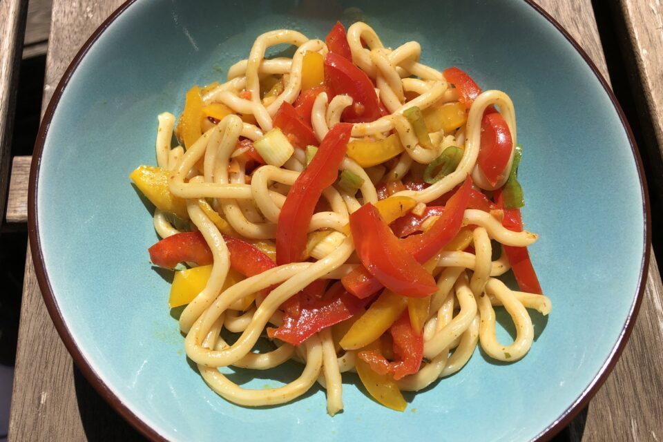 Dieses Rezept stammt von Tanja und war ursprünglich mit Schupfnudeln. Mo wollte Udon- Nudeln dazu ausprobieren. Beides passt super!