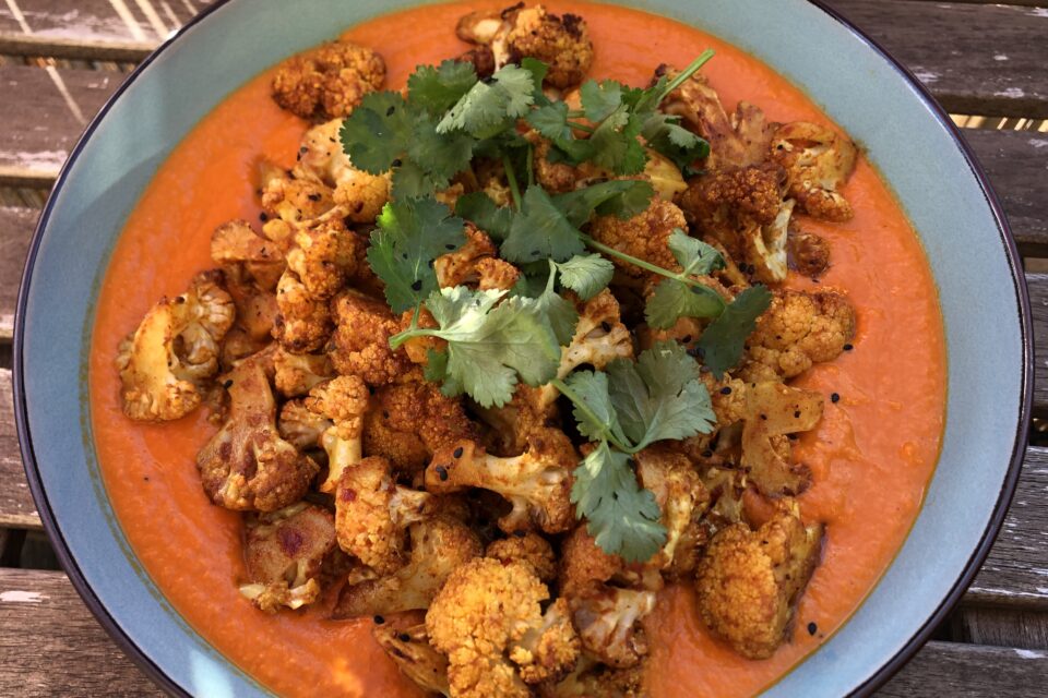 Das Rezept hat mir Esther geschickt- es heißt eigentlich “Veganes Butter Chicken”. Da aber kein Chicken vorkommt und ich auch auf die vegane Butter verzichtet habe (und es gab noch einige kleine Änderungen) benenne ich die Kreation einfach in “Blumenkohl- Traum ” um.
