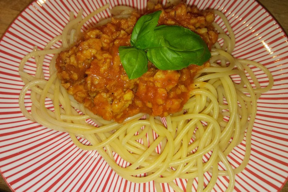 Sojabolognese habe ich bislang noch nie gegessen, aber ich freue mich auf das Rezept und bin gespannt, was mich da geschmacklich erwartet.