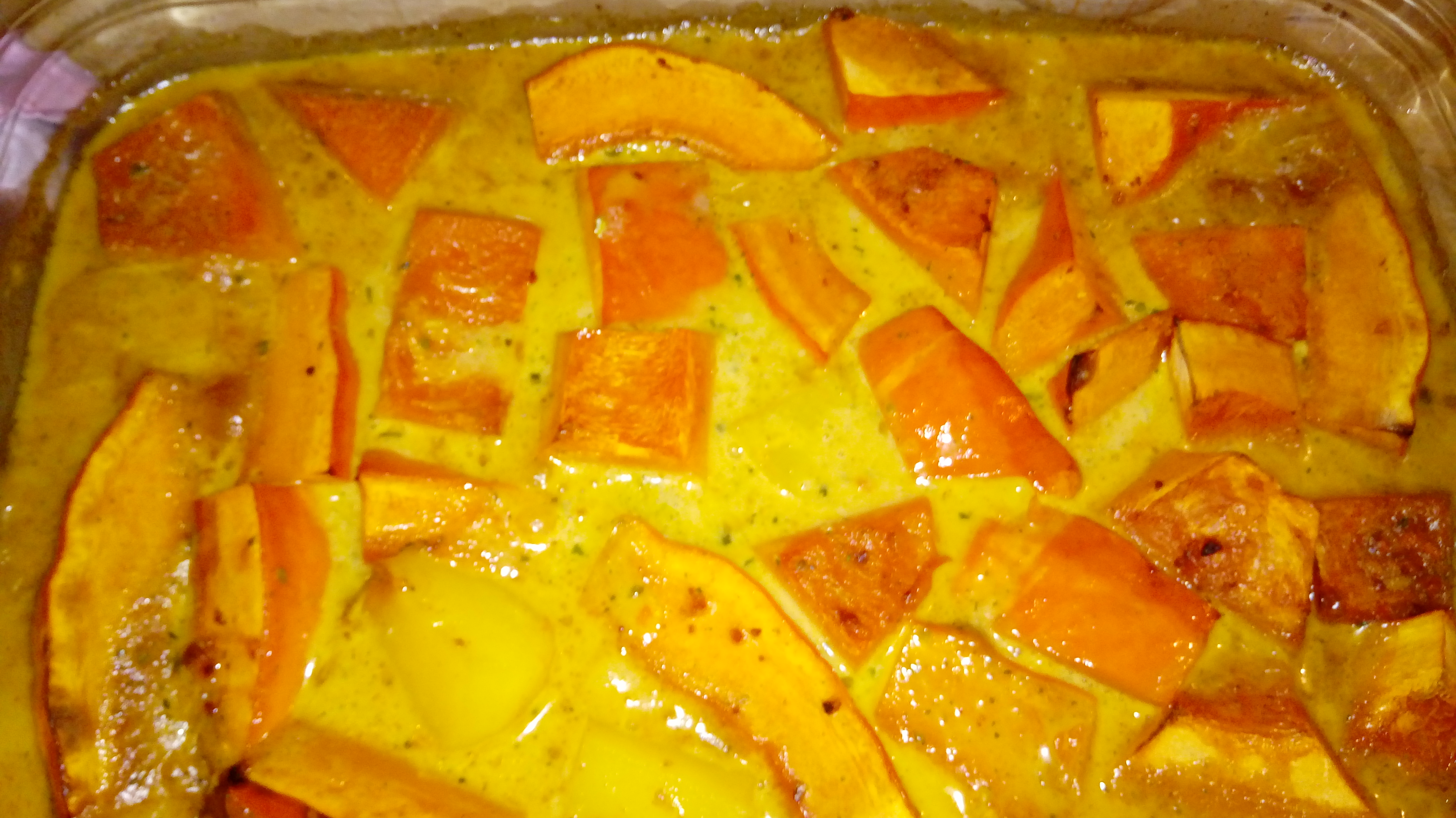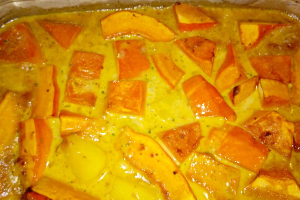 Kürbis putzen und in Spalten schneiden. Kokosmilch mit Gemüsebrühe und ggf. Paste verrühren. Spalten in eine Auflaufform legen und mit dem Gemisch übergießen. Bei 180 Grad ca. eine halbe Stunde backen bis der Kürbis weich ist und schon leicht gebräunt. Schmeckt unglaublich gut und ist mit Reis oder Kartoffeln und einem Salat eine schnelle Mahlzeit!