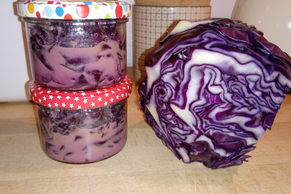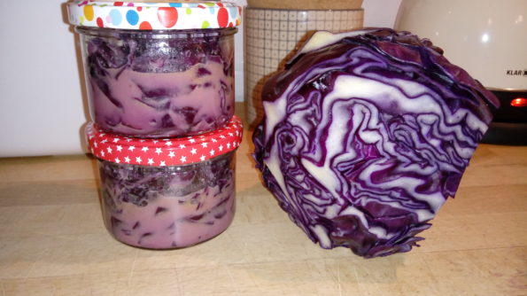 Als Hanna und Christoph den Rotkohl mitbrachten wollte ich eigentlich etwas Neues ausprobieren…und bin letztendlich bei einem stinknormalen Salat geendet- der aber immerhin sehr lecker schmeckt!