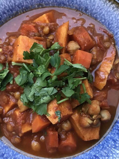 300g Süßkartoffeln 300g Karotten 2 Frühlingszwiebeln 2 Knoblauchzehen 1 Zwiebel 1 Stück…